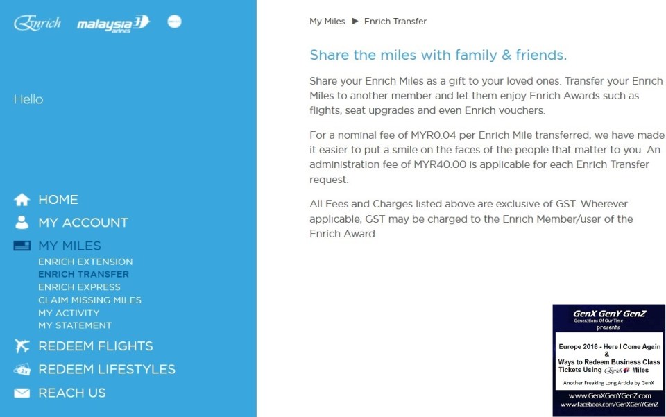 Transferring Enrich Miles and cost
