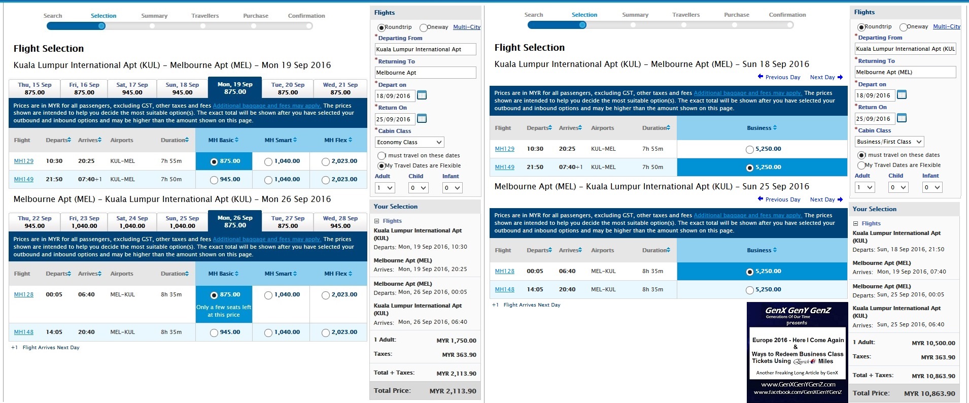 KL Melbourne Air Ticket Price