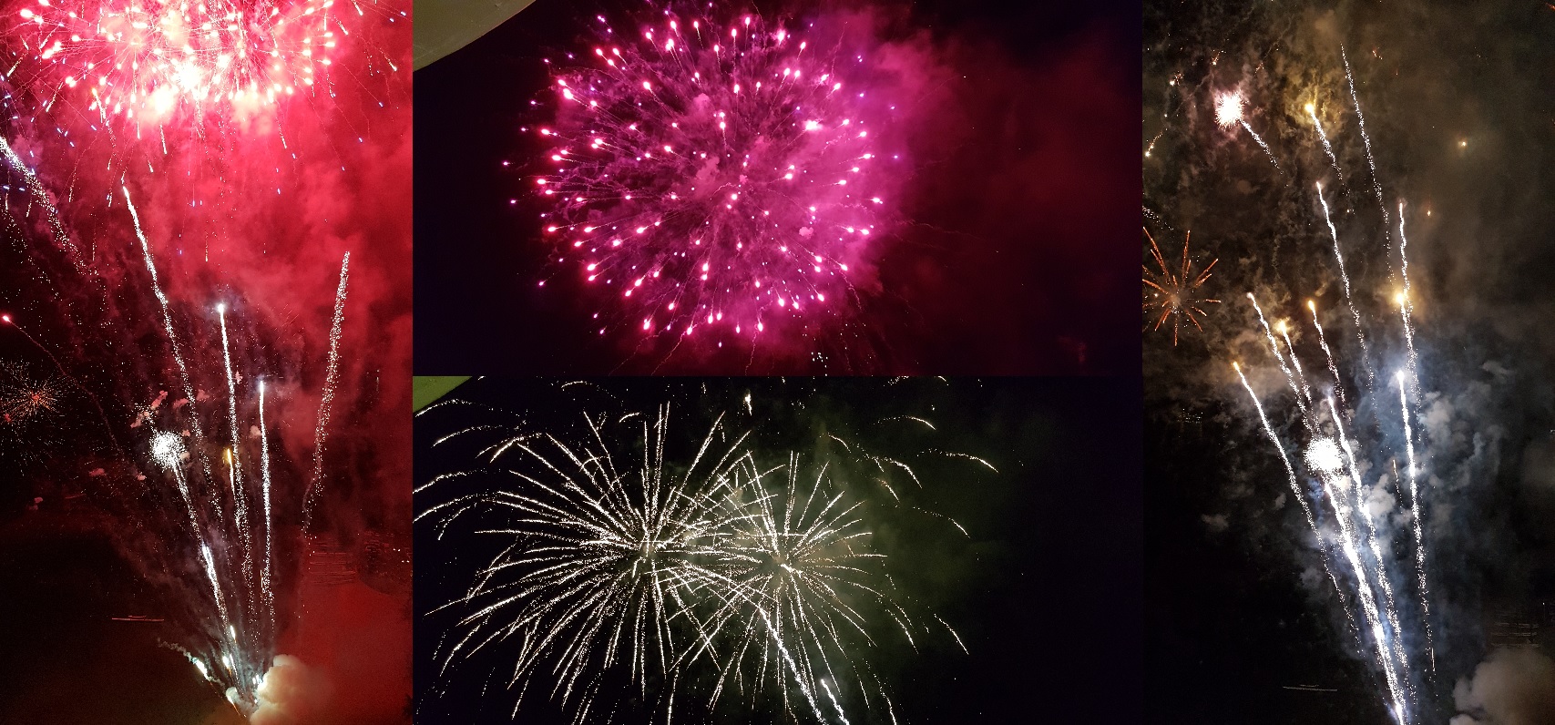 Fireworks viewed vrom Hilton Hawaiian Village Ocean Front Corner Room Raibow Tower