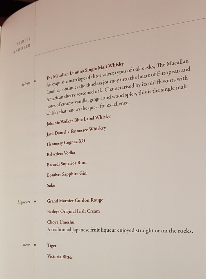Singapore Airlines Suite Airbus A380 Melbourne to singapore Menu 2