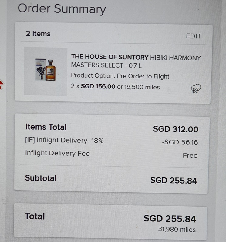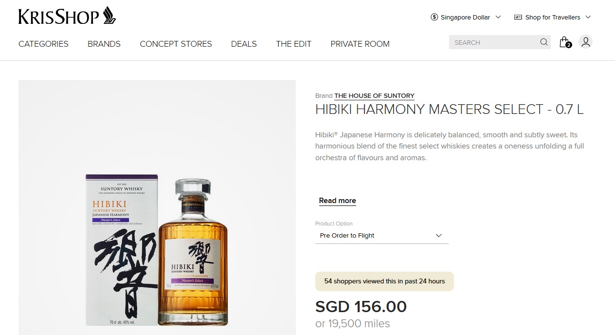 Having said the above, I was browsing KrisShop for Travelers as I be flying soon with Singapore Airlines….. and to my surprise I can get a bottle of Hibiki Master’s Select Japanese Harmony for less than RM500 after applying the promo code TRAVEL (until April 2024 with minimum SGD220 spending) where I will get 18% discount.