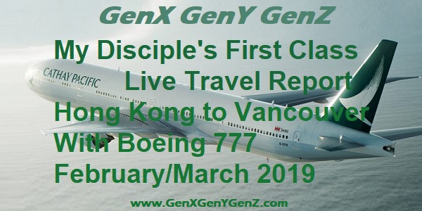 I am pleased to present to you another of my disciple’s live travel report – this time Hong Kong to Vancouver on Cathay Pacific First Class Boeing 777-300ER.