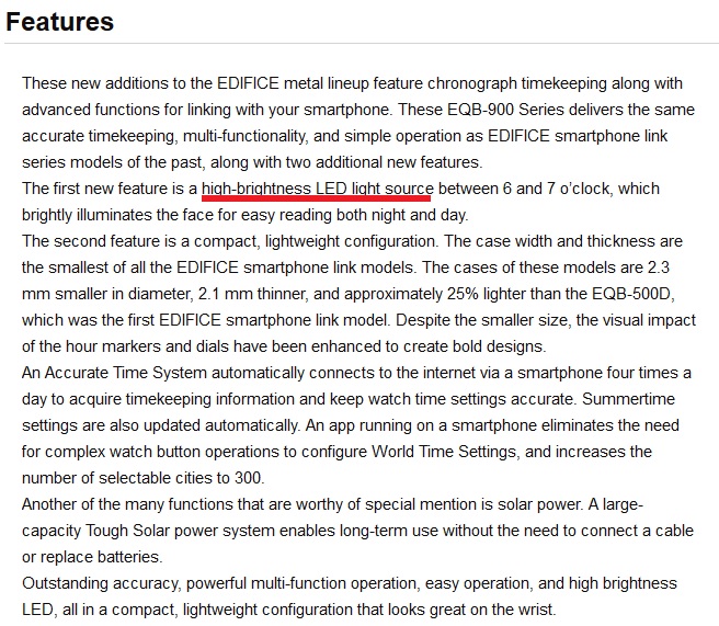 Casio Edifice Solar Bluetooth EQB 900 DB Blue LED Feature