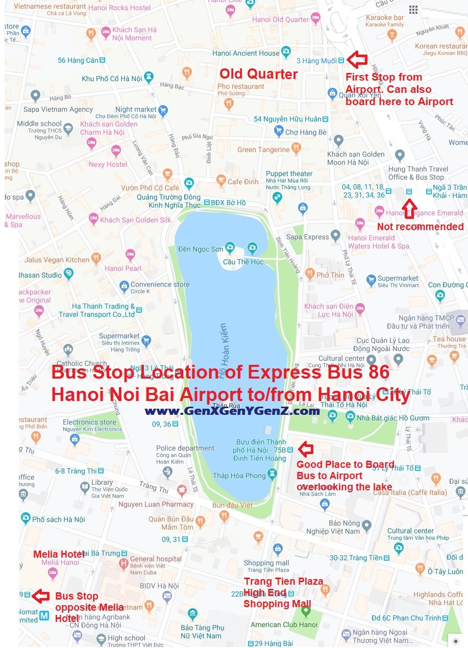 Hanoi City Bus 86 Express Bus 86 Bus Stop Locations to and from Noi Bai Airport