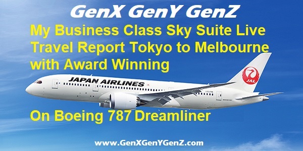GenX Business Class Live Travel Report Japan Airlines Sky Suite Boeing 787 Dreamliner Tokyo to Melbourne ← Previous Next →