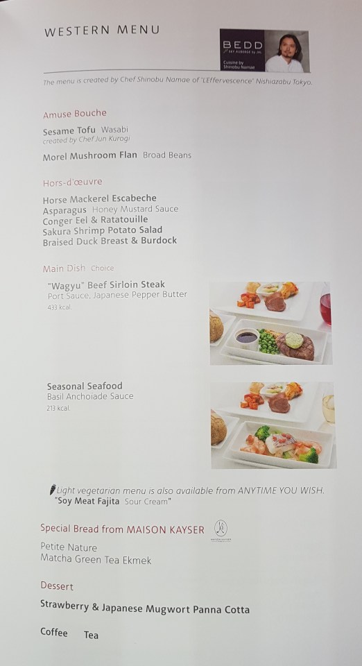 Japan Airlines Business Class Menu Tokyo to Melbourne 6