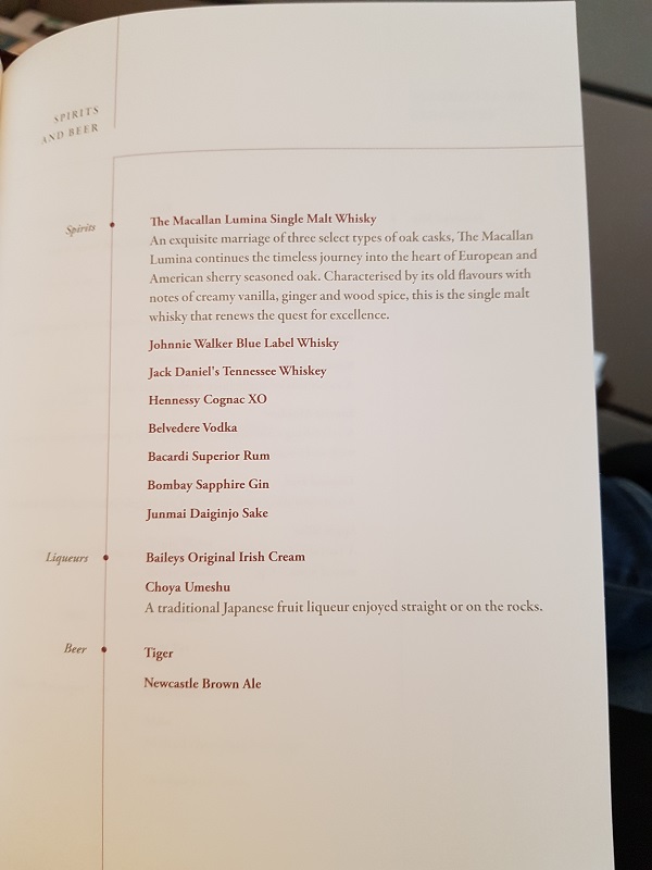 Menu Singapore Airlines Suite Class London to Singapore 5