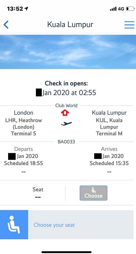 British Airways Business Class London to KL