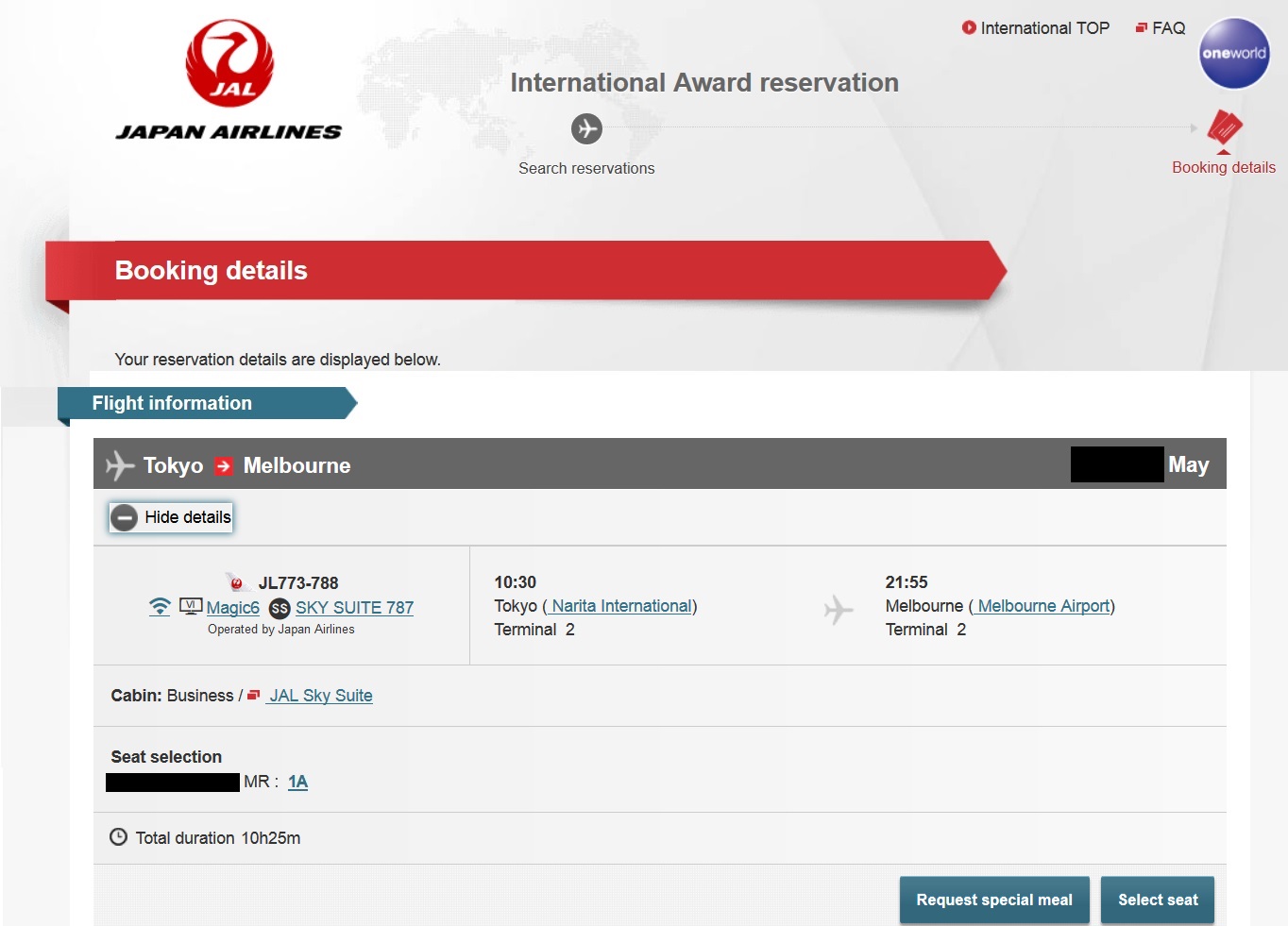 Japan Airlines Tokyo to Melbourne Business Class May 2019