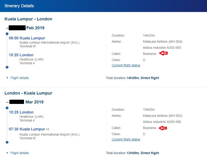 malaysia airlines business class london