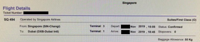 Singapore Airlines First Class SIN to Dubai