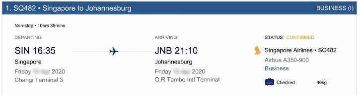 Singapore Airlines Johannesburg 2020