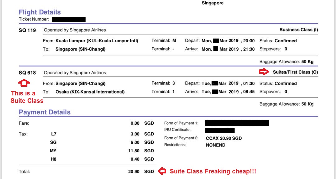 Singapore Airlines Suite Class KL to Osaka gapore 2019