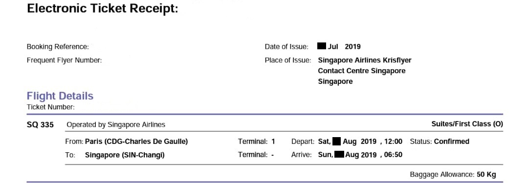 Singapore Airlines SUITE Class Paris to Singapore Aug 2019