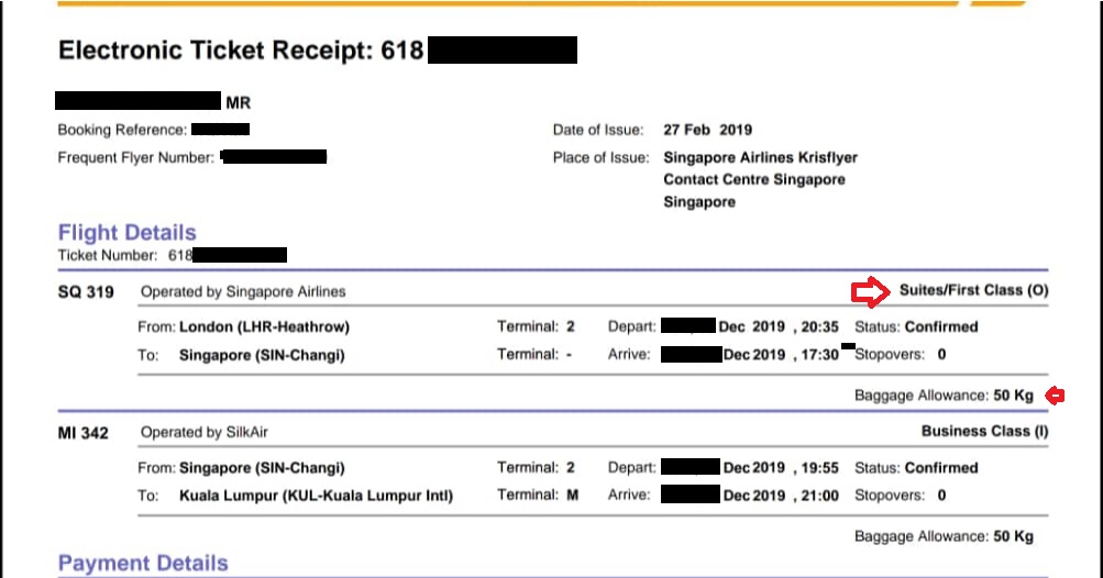 Singapore Airlines Suite London to SIN Dec 2019