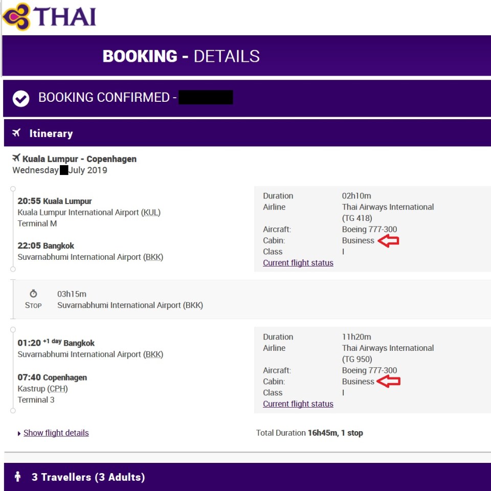 Thai Airways Business Class Bangkok to Copenhagen 2019