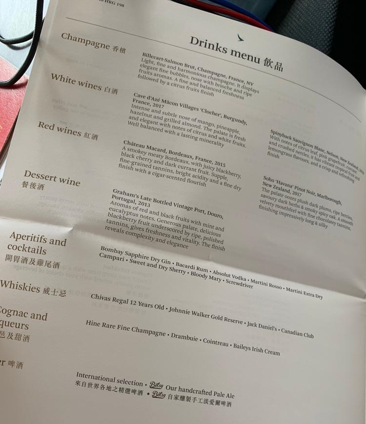 GenX Disciple Live Travel REport Cathay Pacific A250-1000 Menu 4