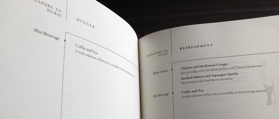 Singapore Airlines First Class Boeing 777 Dubai Menu 2