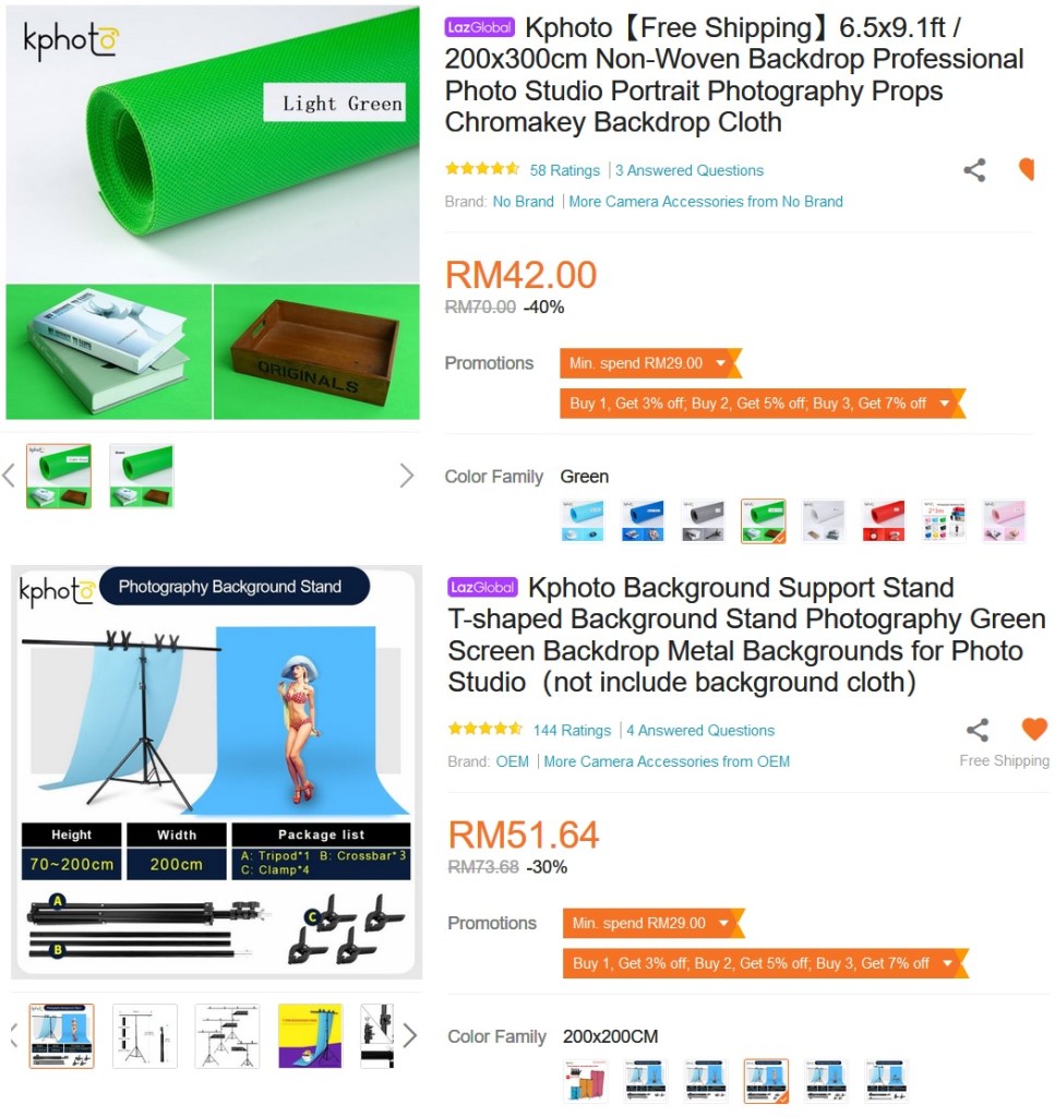I am sure you have heard of green screen. You can easily purchase a non-professional green screen set up for your home needs from Lazada for about RM100.