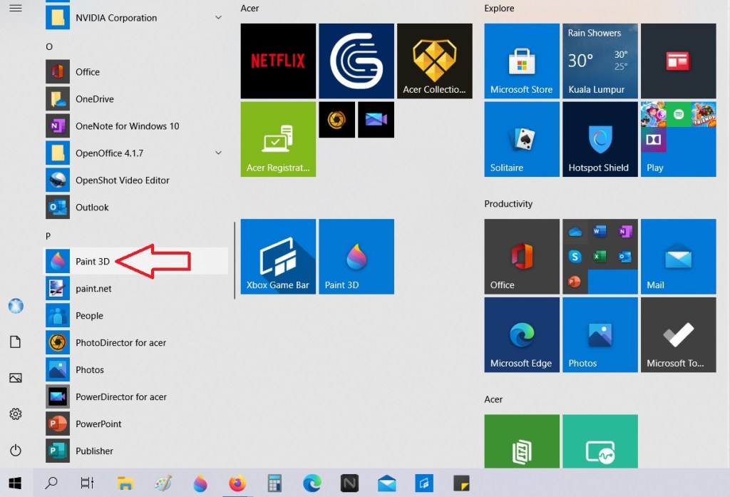 Step 1 – Open Paint 3D by clicking on the Windows Icon at the lower left corner