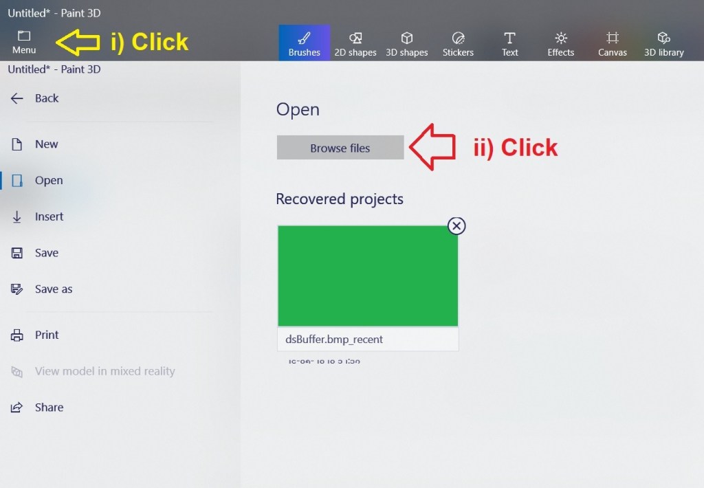 Step 4 – Select Image To Be Superimposed Into Background. (i) click on MENU; (ii) click on Browse Files and (iii) Open File