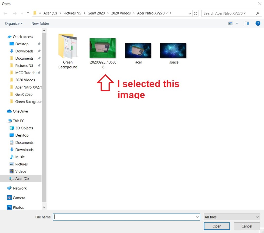 Step 9 – Click on the Menu and then Browse Files and then select the BACKGROUND image