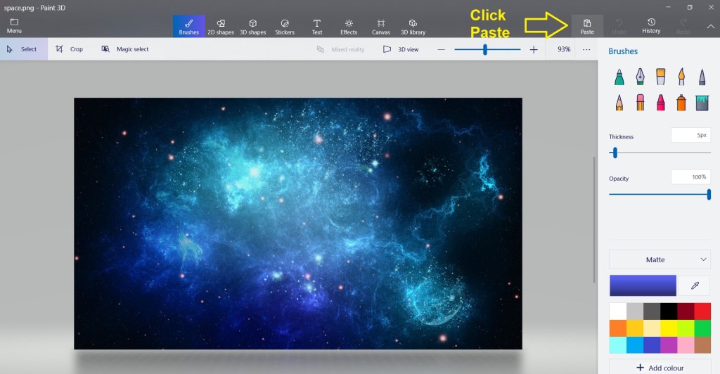 Step 2 – Choose Your Background from the internet, Copy and Paste the Background into Paint 3D and then click on Canvas to Resize it. You can also open a file if you have a ready background image