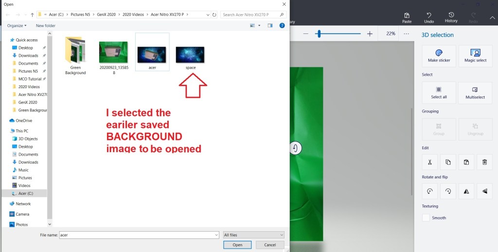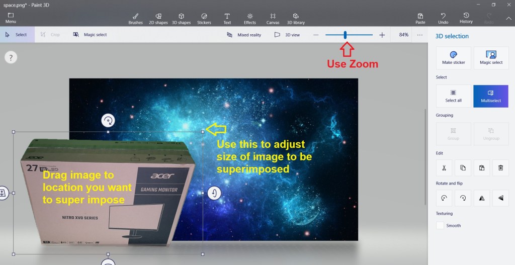 I have also took a video of the above steps to give you a better understanding of the steps mentioned above. Click here to my YouTube video titled How To Superimpose An Edited Image Into Any Background with FREE Paint 3D App That Comes With Windows