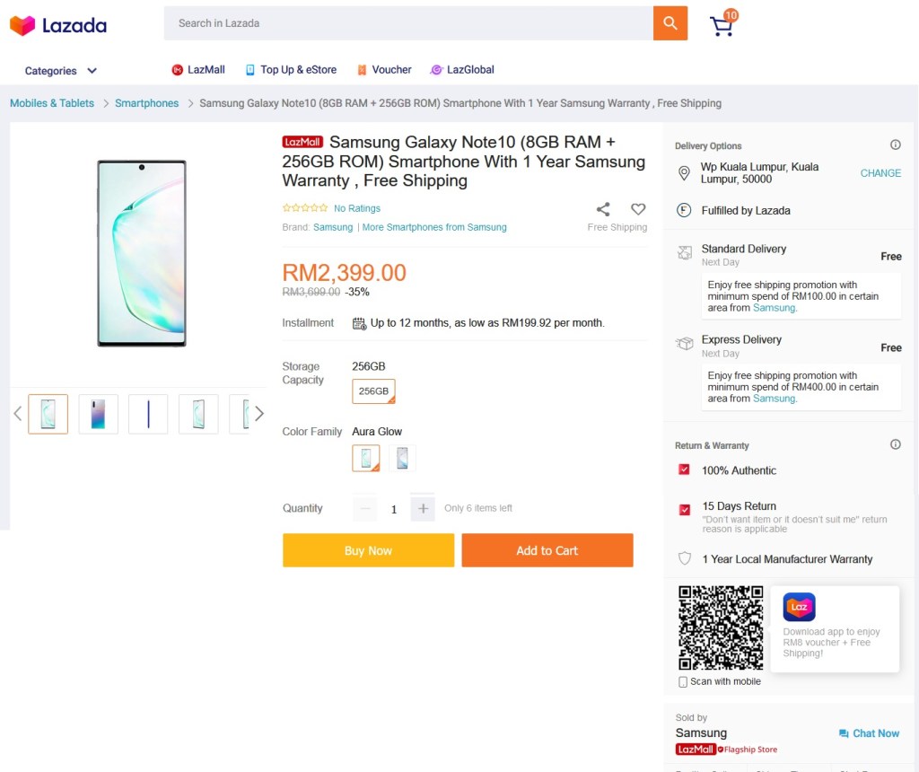 Two days ago, i.e. 13th October 2020, I shared with you guys that we can get pretty good deals at Lazada for the Samsung Note 10, Samsung Note 10 Plus and Samsung Galaxy S20+ (click here to read it) where the said models were selling for less than RM3K each. The sets were being sold by Samsung Official Store at Lazada which means we are guaranteed a new set that comes with Samsung Malaysia Warranty and more importantly is we get to use Samsung Pay.