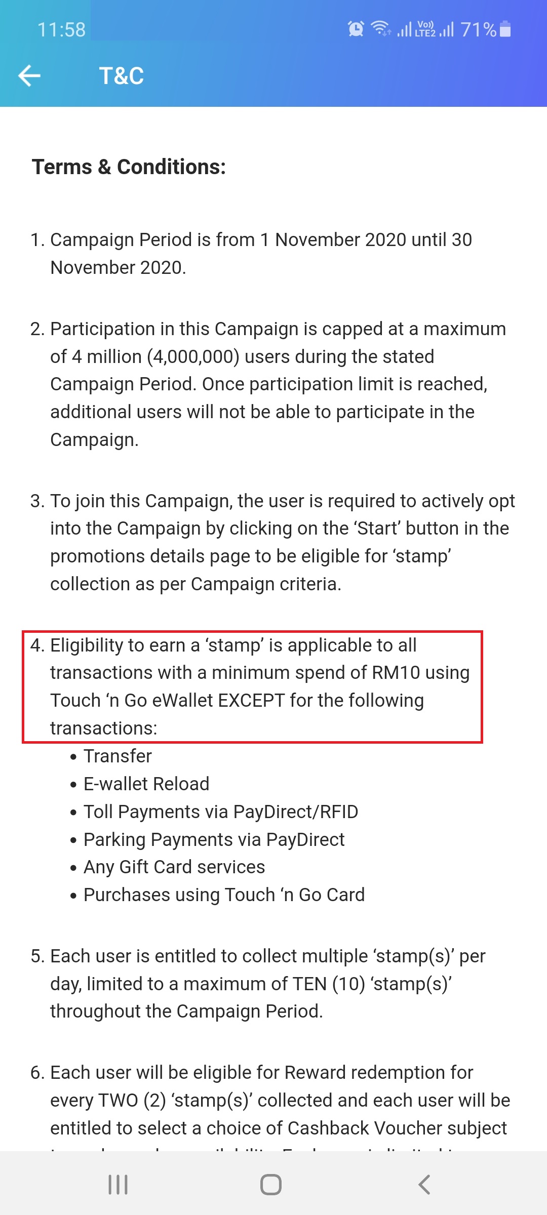 The RM3 Cash Back at 7 Eleven can only be redeemed twice and so is the RM2.30 cash back. After than the 7 Eleven Cash Back will drop to RM1.60.