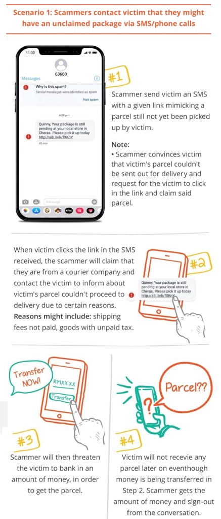 Talking about parcel scam, click here to read about a new scam method involving a FREE bottle of wine delivered to a home in Singaporee plus other scams invilving Pos Laju and Big Pay. Password: Scams