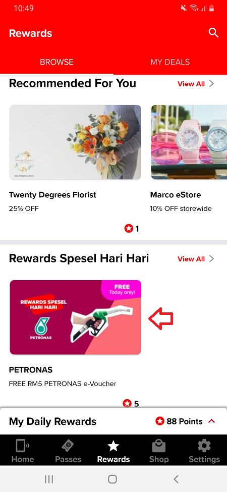 Step 3 – Go to My Deals and Tap On The Petronas FREE Money
