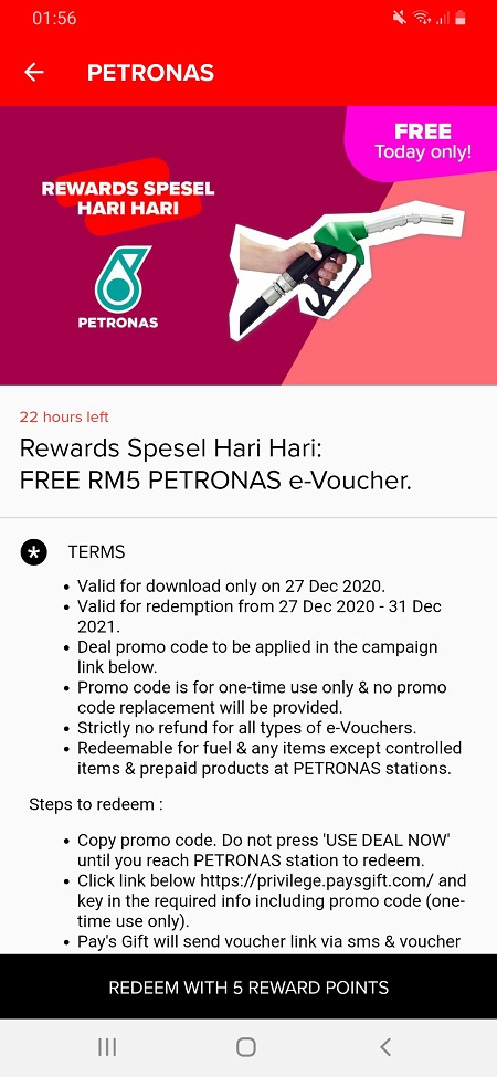 At Rewards Spesel Hari-Hari, you may or may not see the FREE RM5 Petronas Cash Voucher!