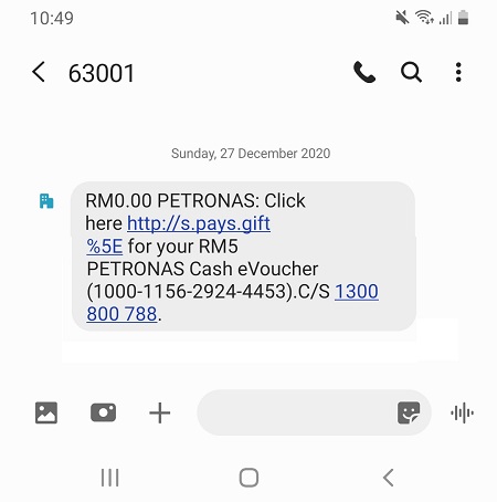 Step 5 – You will then receive an SMS where you are to only tap on the link when you are at the Petronas Station.