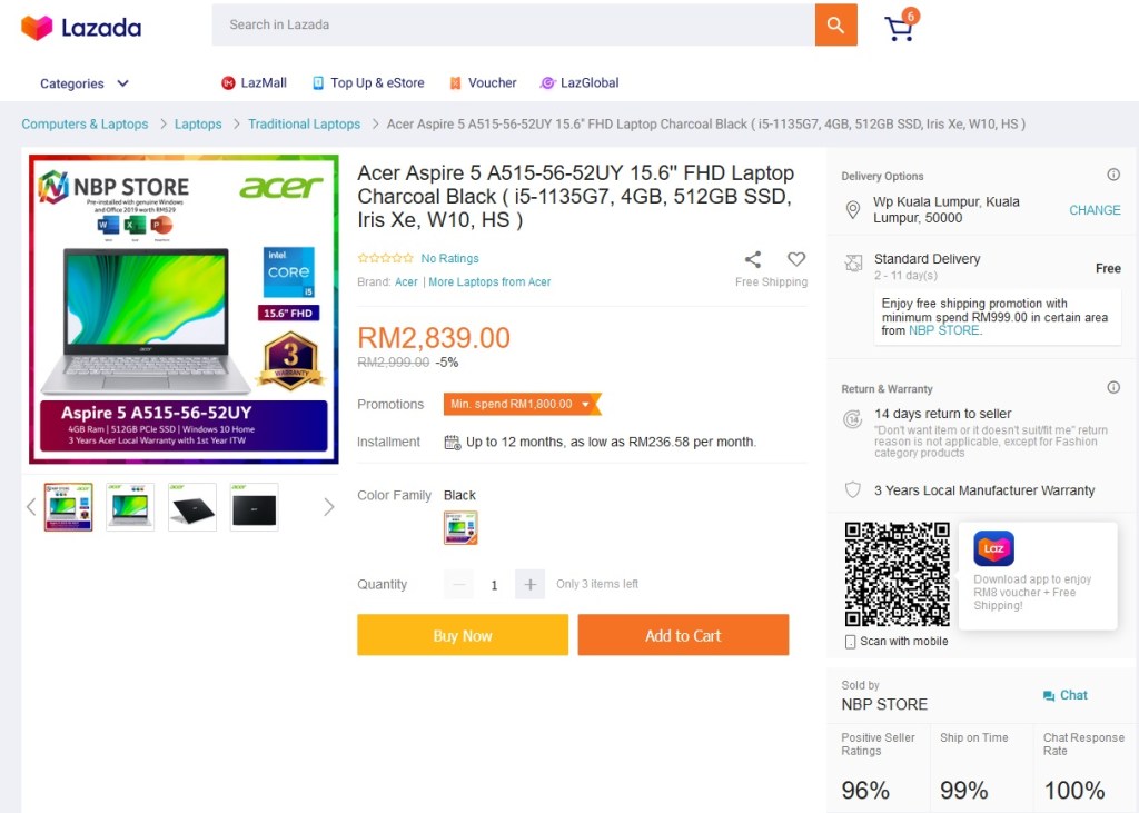 And the best part is that it comes with 3 Years Acer Local Warranty.