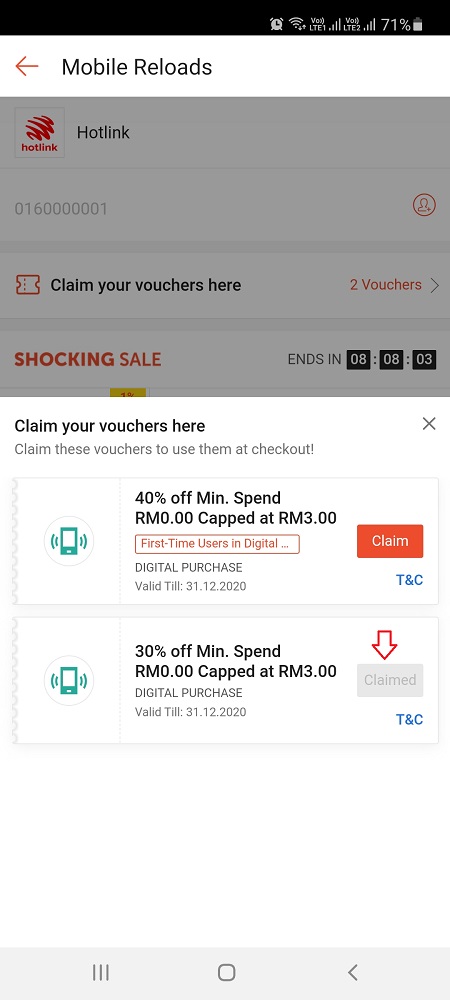 Earlier I showed you that I have claimed then RM3 Voucher at Step 5. I have to once again go select and “redeem” that voucher. For Lazada’s case, once you claim a voucher, most of the time it is automatically applied and sometimes it can be more than one voucher.