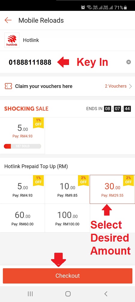 Step 3 – Since I am Topping Up Hotlink, I tapped on it.