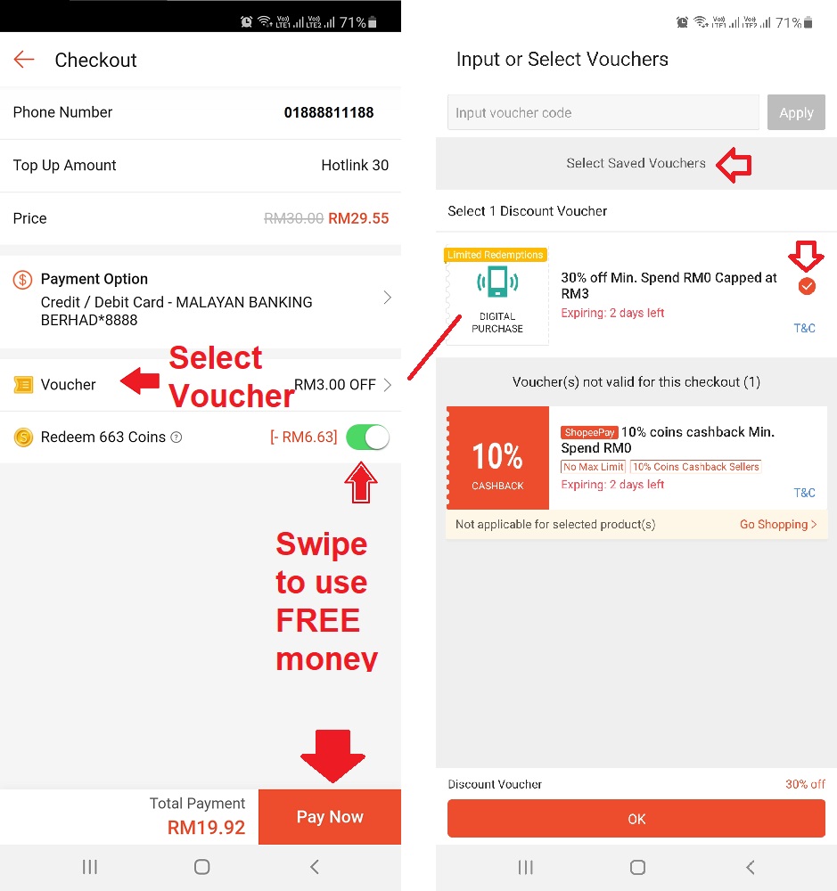 Step 7 – You Have To Once Again Select Voucher and Slide To Use The fREE Shopee Coins