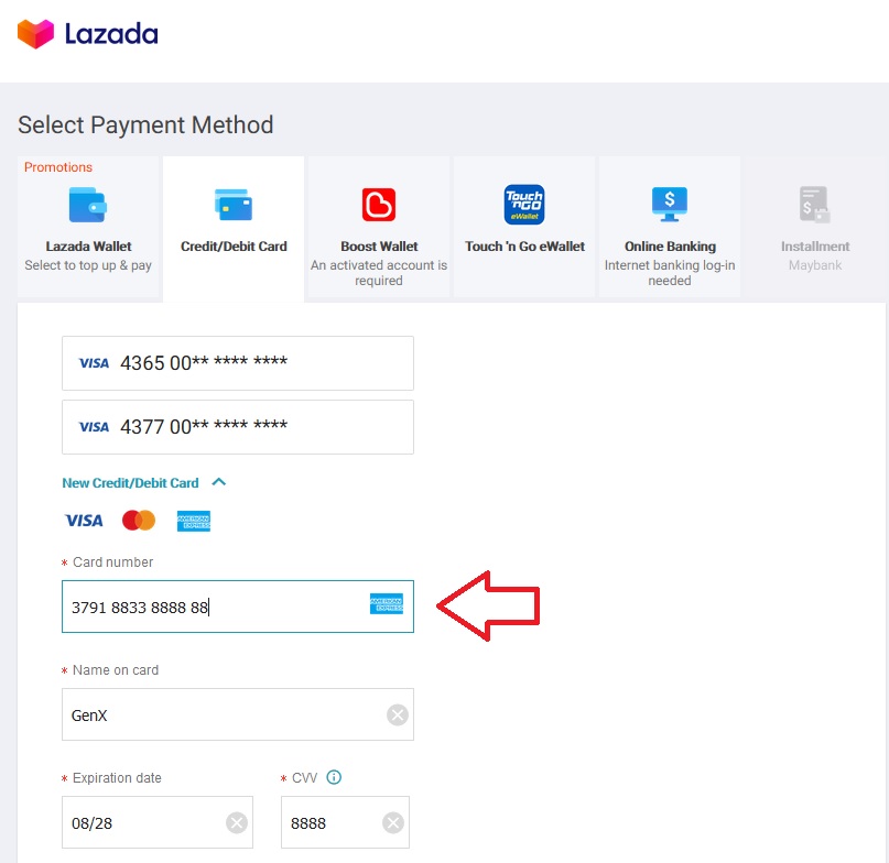 Fantastic, it is confirmed that we can add our AMEX card at Lazada for payment!