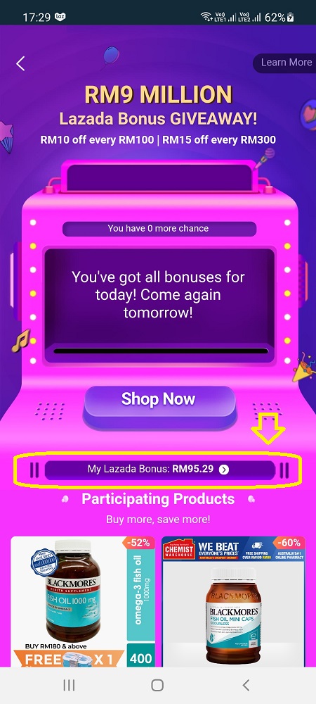 Today is the 23rd of March 2021 and I have collected close to RM100 Lazada Bonus…. will have to see on 27th March if this said Bonus will benefit me.