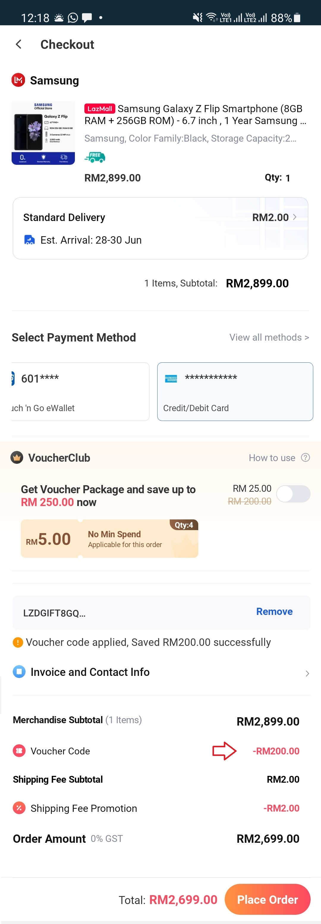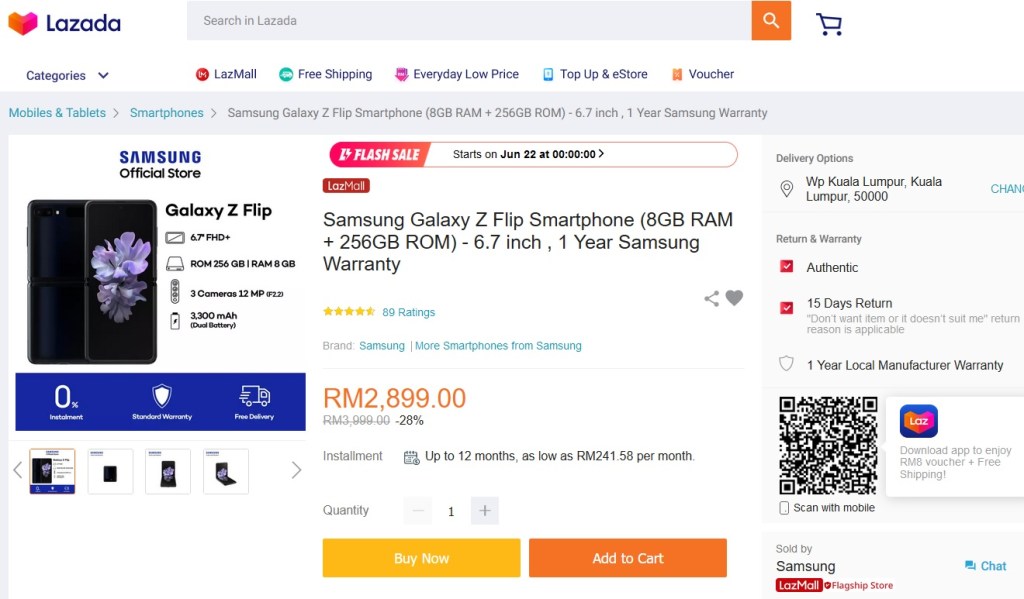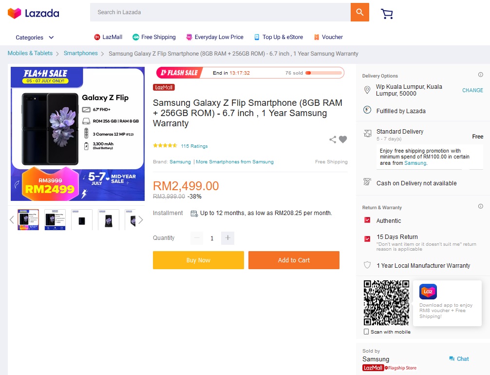 Actually I ended up paying RM2699 for the Samsung Galaxy Z Flip as I used my FREE GrabRewards Points to get a RM200 Lazada Cash Voucher.