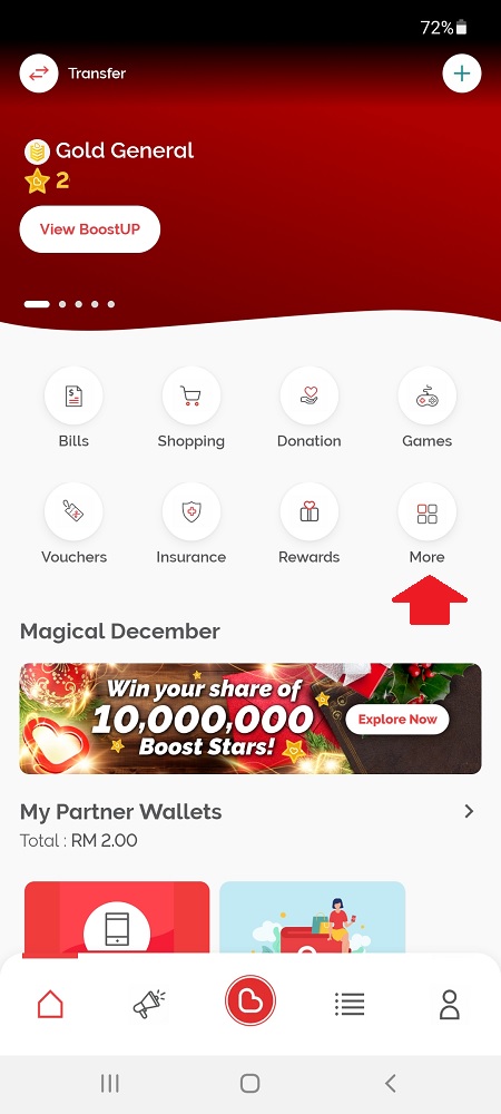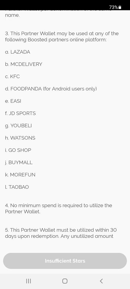 We can then use the Boost STARs to redeem for more FREE Money. Below image shows we can use Boost STARs to redeem for FREE Money to be used with Selected Merchants including Lazada.
