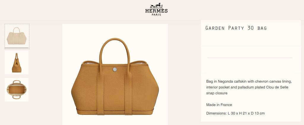 However, my wife is not into Hermes Garden Party.