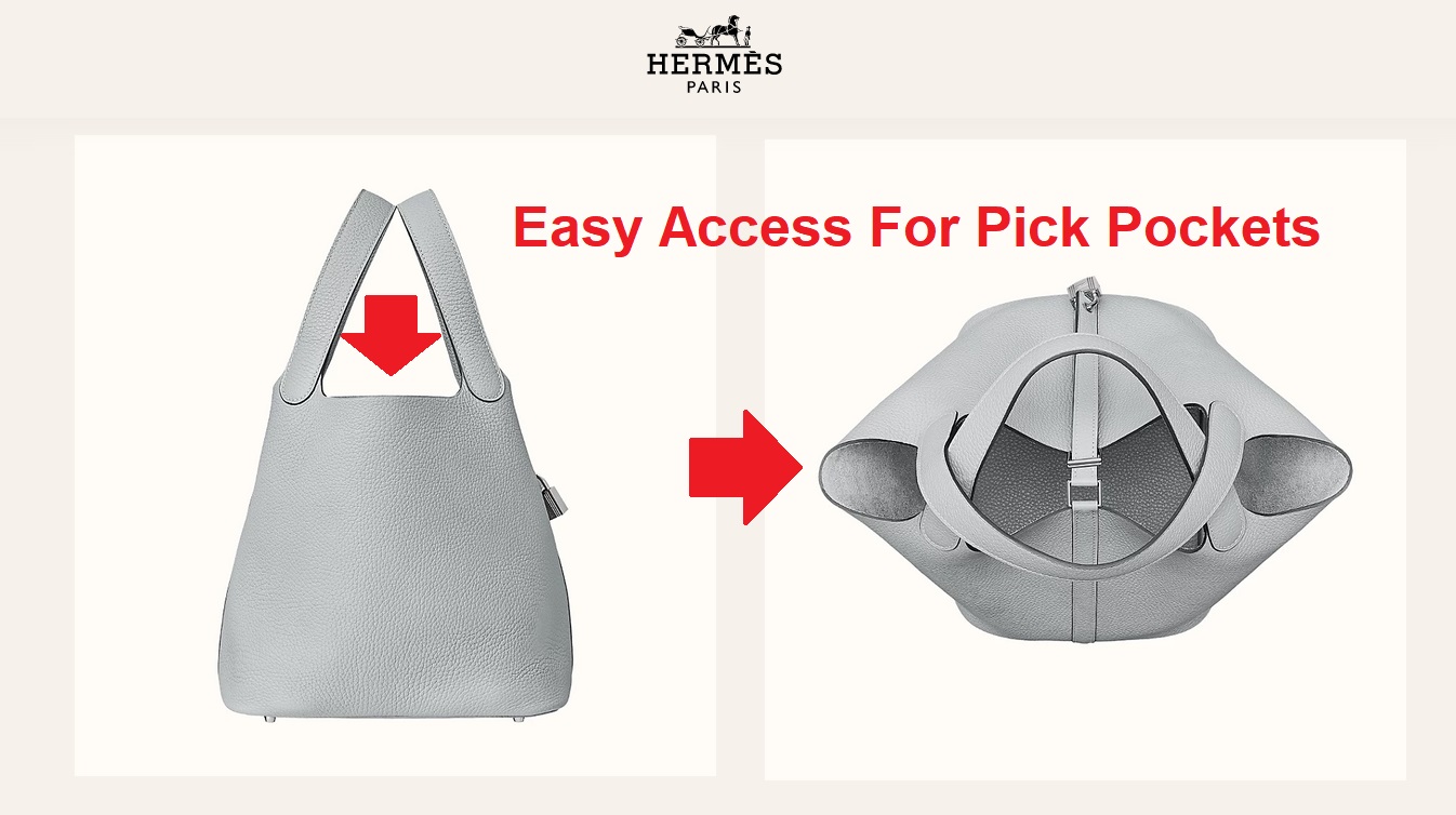 But when the Sales Associate showed the Picotin to my wife, I commented that the bag is unsafe with the wide gaps! I tell you, don’t let the word LOCK fool you!