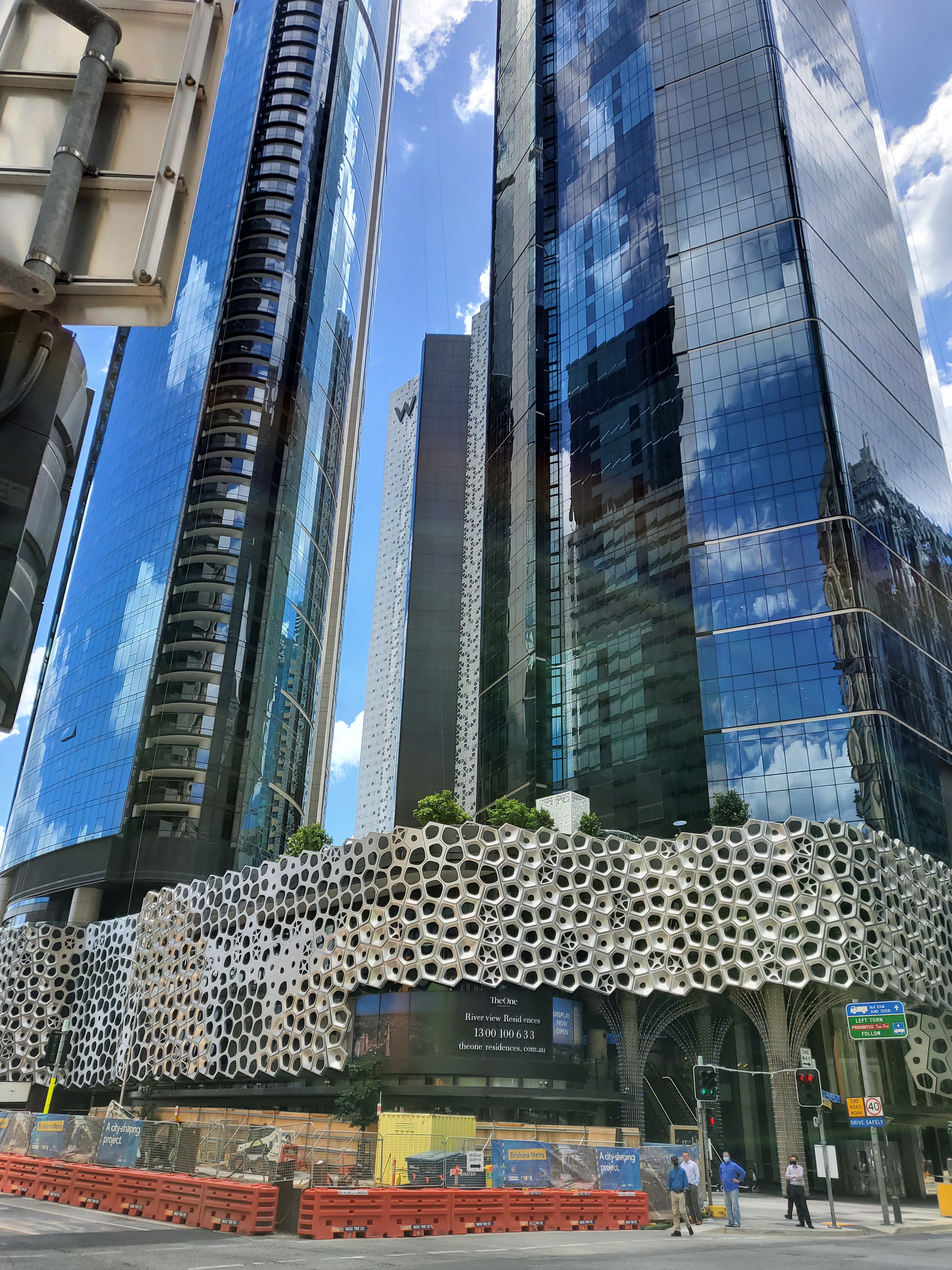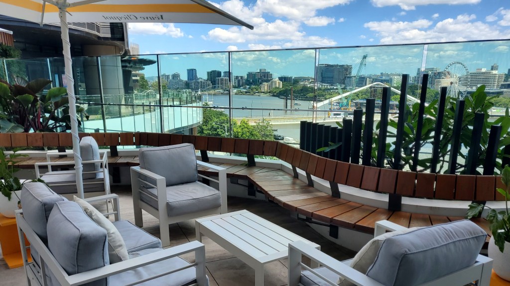 The W Brisbane Hotel rooms have view of the Brisbane River and about 5 minutes walk to Queen Street Mall.