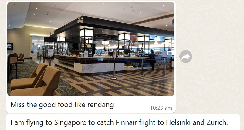 He had to fly to Singapore to catch the Finnair flight to Helsinki.