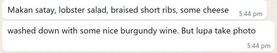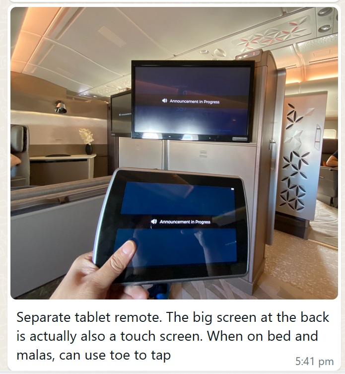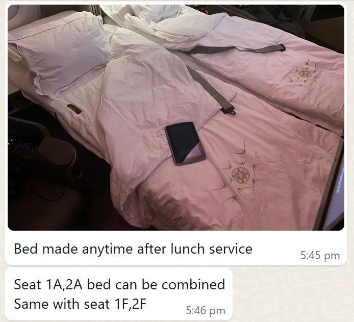 And for those of you who have yet to expereince Singapore Airlines Suite Class, I tell you, once you expereince it, you won’t want to fly Singapore Airlines Business Class where you need to sleep senget, hahahaha.