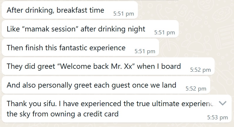 I would like to thank the Bro for his Live Travel Report which brings back fond memories for those of us who have flown with Singapore Airlines Suite Class and can’t wait to experience again the excellent service by their cabin crew.