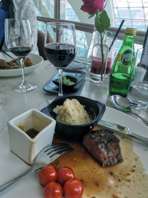 We had starters like smoked salmon (HUGE slices), miso teriyaki octopus and foie gras terrine and the nice sunchoke soup… the ordering of food was First Class by itself. We felt like VIPs with all the attention and service. They timed everything well, and would appropriately check on whether we are ready or happy with the food they’ve served us. Drinks are also really good. I began with Moet and Chandon Brut and then 2005 Chateau Leoville-Las Cases ‘Clos du Marquis’ (RM350 a bottle, https://www.wine-searcher.com/find/leoville+cases+clos+du+marquis+st+julien+medoc+bordeaux+france/2005) to go along with the main dish (I had lamb shank while my wife had wagyu beef tenderloin).