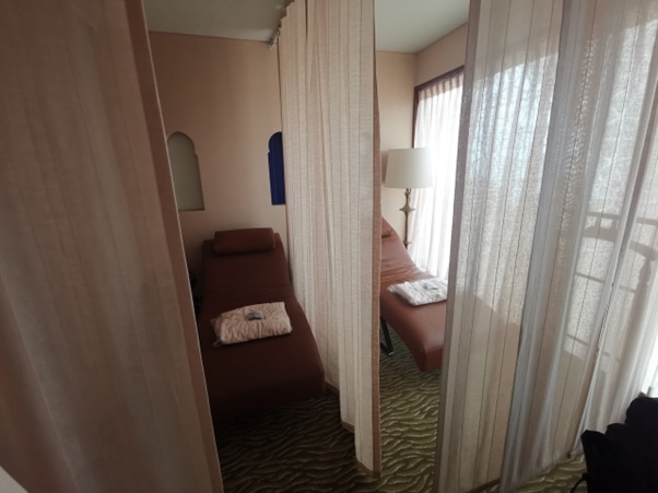 We both agree the Wagyu beef tenderloin is a class above – totally delicious and perfectly prepared. We were so stuffed so decided to take a break before returning for the famous Middle Eastern Tres leches cake. The break was initially planned for a 15 mins complimentary spa but somehow someone gotten the time wrong. We felt the opportunity to enjoy first class travel is already such a blessings, so we didn’t argue over the missed spa issue – the people at the counter is also just doing their job. Instead of spa, we went explore the place further – the nap room.
